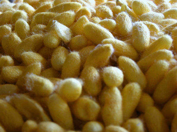 We then went to a silk-making factory where you can watch the entire process from the moths mating, to the worms eating mulberry leaves, to them making cocoons to the cocoons being boiled (ugghh) to the silk bobbin winding and weaving on the looms. We were then led into a shop in which the prices nearly made me eat my tongue in fright. I went back out to the factory and played with a pop-ball with a boy in there who had to stick around his mum, who works one of the looms, all day. He was a nice young guy, aged about 11, and I gave him the pop-ball so he had something to do while he was hanging around. He loved it, and his mum was pretty pleased too, so that, as well as seeing the silk-making process made the visit worthwhile for me.