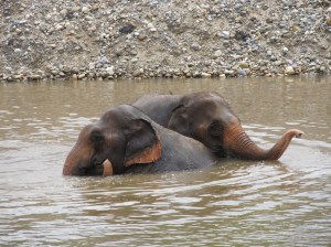 We’re back in civilization now – Chiang Mai – and I have to confess that after 7 days of eating vegetarian food only, the first thing I bought was pork on a stick. For those who are mad about both elephants and tofu, however, I highly recommend you go to the park for a week or two and you will get your fill of both.
