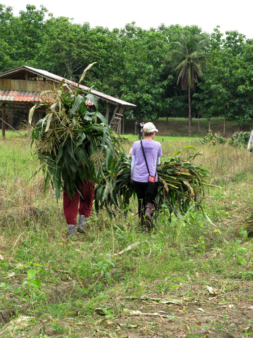 Corn cutting itself isn’t so bad. You get to play with machetes, and heck, there can only be so many cobras hanging around, right? You cut the corn, stalk and all, tripping over the weeds and trying not to break your ankles in the ditches that are everywhere, and meanwhile the sun rises above you and you start to sweat. Within a very short amount of time you look up and see you are getting further and further away from the truck. And the shade. And the water supply. Then you have a lunch break and you think ‘Well, that’s not so bad. We survived it.’ But it ain’t over yet…