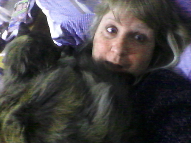 When I returned and opened the cage, she took a few minutes to sniff, then hopped out. And up onto the bed with me. And ate biccies one at a time from my lap. And within 10 minutes, she had washed my face, head butted me, smooched like crazy while gradually moving further and further onto my body, until finally I was Mount Everest and she was Sir Edmund Hillary, purring all the way to the top. And now, an hour or so later, she’s parked right next to me, flat out on her back, full of fresh meat and biccies and fast asleep on autopurr.