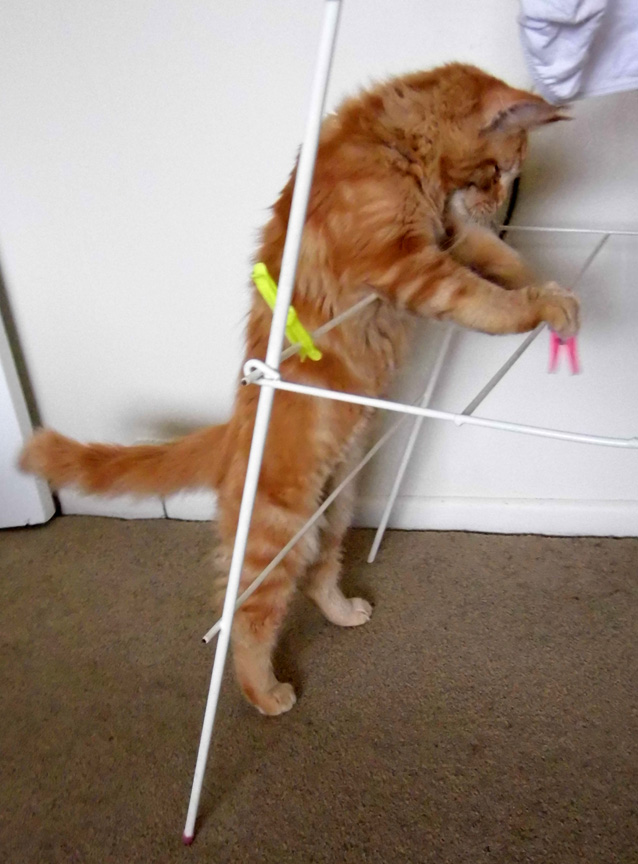 She dangled a stupid toy in front of me this afternoon. It is fun to watch her act like the most foolish of kittens. To be contrary, I played with the bit she least expected me to. She must learn that it is a cat’s duty to be contrary on an ongoing basis. But I want her to keep feeding me, so, for a few minutes, I played .