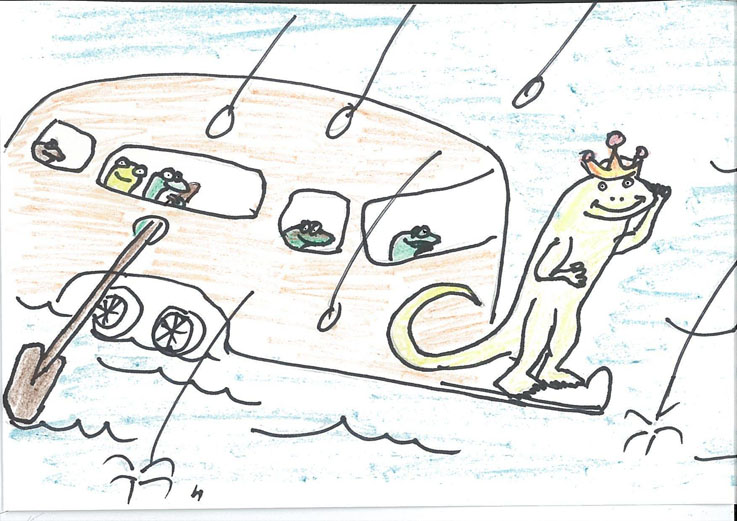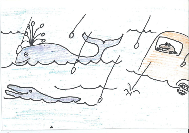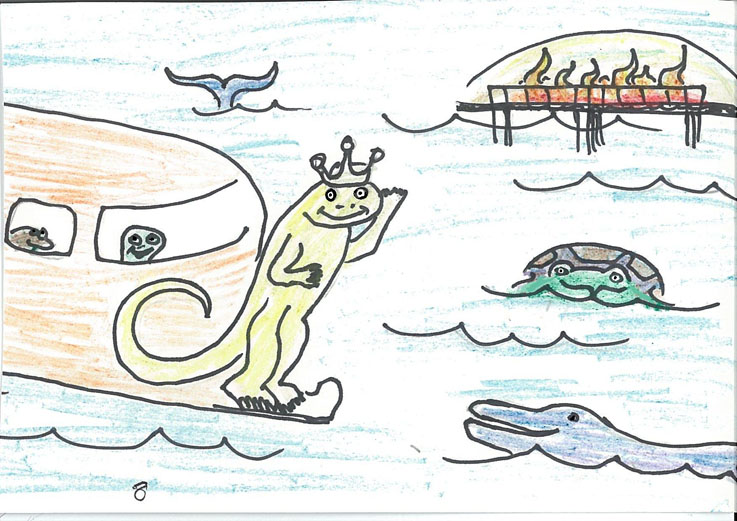 Then Lizard Two espied a whale who gestured grandly with his tail