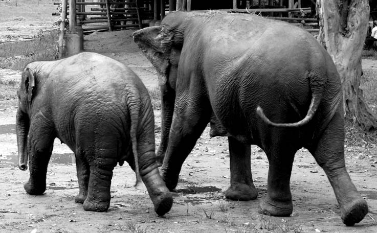 Located approximately 50 kilometers from Kanchanaburi, Thailand, the Erawan Elephant Retirement Park is the newest project sponsored by the Save Elephant Foundation. The first five elephants to call the park home arrived in early July, 2013. All the resident elephants are former tourism elephants, rescued from trekking camps, street-begging or performance shows.